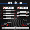 • İki yönlü 6 adet bits uç ve toplamda 12 farklı Yıldız/Düz/Torx ve Hex vidalama uçları sayesinde her iki yönde bulunan vidalama bits uçları çok yönlü kullanım imkânı.