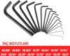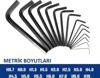 • 0.7, 0.9, 1.3, 1.5, 2, 2.5, 3, 4, 5, 5.5, 6, 7, 8, 10mm Metrik Allen Anahtar Seti
