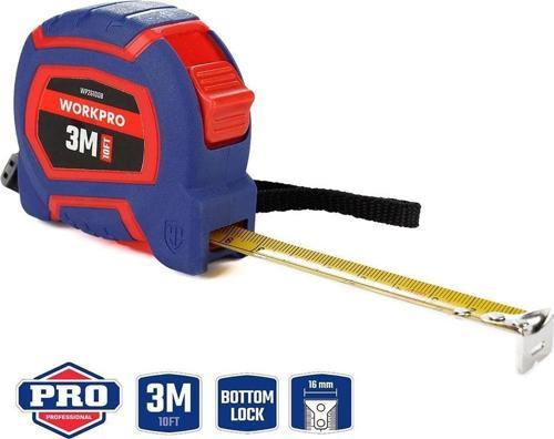 • WORKPRO WP261008 3Mx16mm/10Ft. Naylon Kaplama Sarı Çelik Şerit Metre