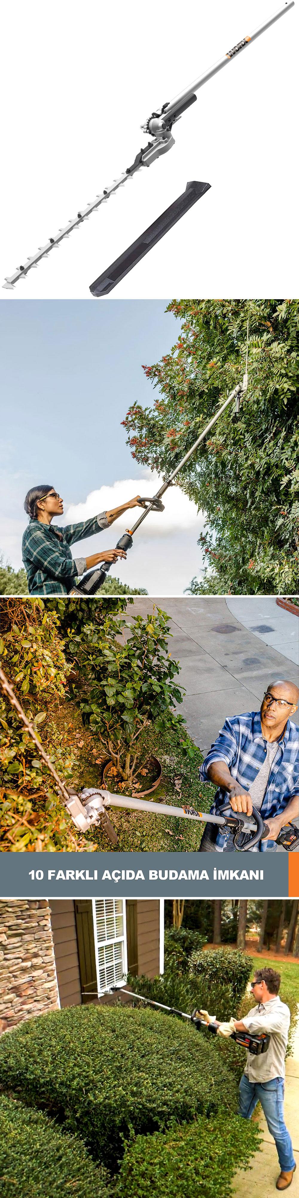 · WORX WA0220 WG186E.1 ile Uyumlu 43CM Teleskobik Uzatmalı Açı Ayarlı Çit Budama Başlığı