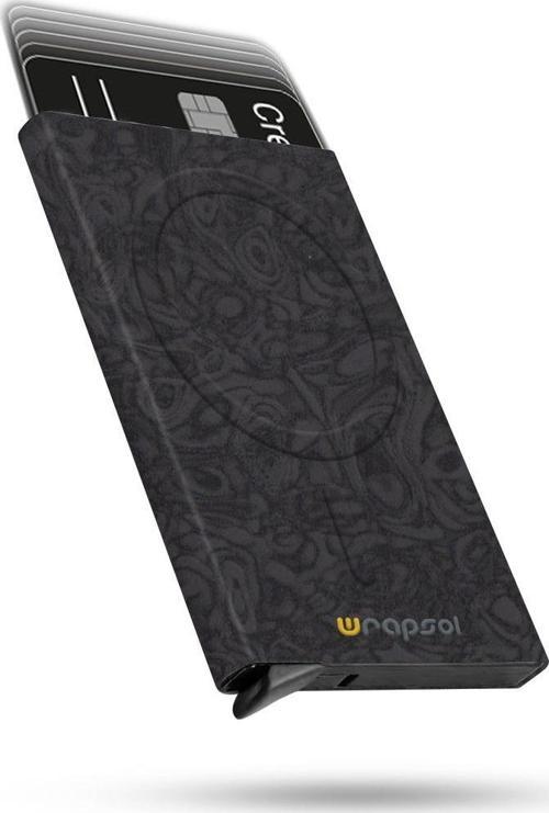 Wrapsol Magsafe Mekanizmalı Kartlık Rfid Korumalı Alüminyum Otomatik Kredi Kartlık Desenli Dalgalı Siyah