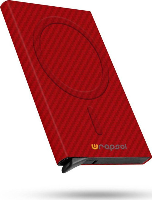 Wrapsol Magsafe Mekanizmalı Kartlık Rfid Korumalı Alüminyum Otomatik Kredi Kartlık Desenli Kırmızı Karbon