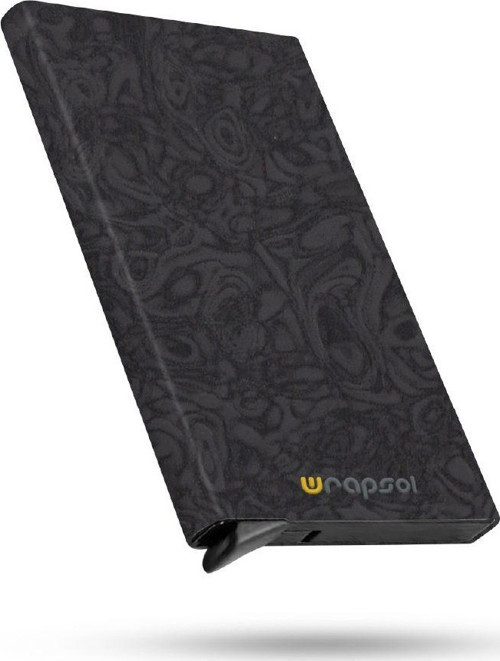 Wrapsol Mekanizmalı Kartlık Rfid Korumalı Alüminyum Otomatik Mekanizmalı Kredi Kartlık Desenli Dalgalı Siyah