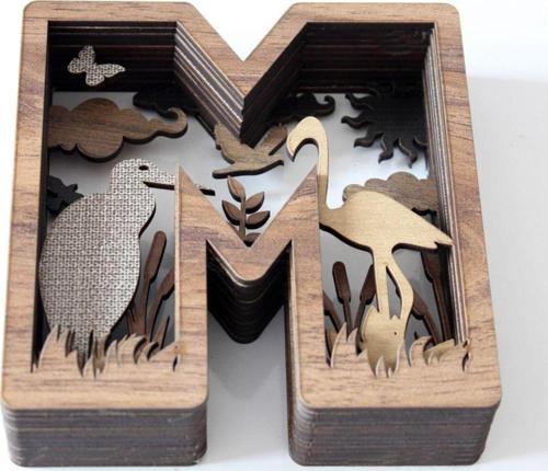 M Harfi 3 Boyutlu Ahşap Özel Tasarım Dekoratif Obje Biblo