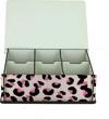 Pembe Leopar Desenli 6 Bölmeli Ahşap Çay Kahve Saklama Kutusu