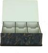 Wuw Siyah Mermer Desenli 6 Bölmeli Ahşap Çay Kahve Saklama Kutusu