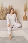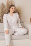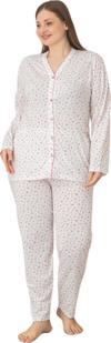 - Paket içeriği: 1 büyük beden önden komple düğmeli çiçekli uzun kollu penye üst, 1 büyük beden kalıp çiçekli desenli pamuklu penye alt pantolon.