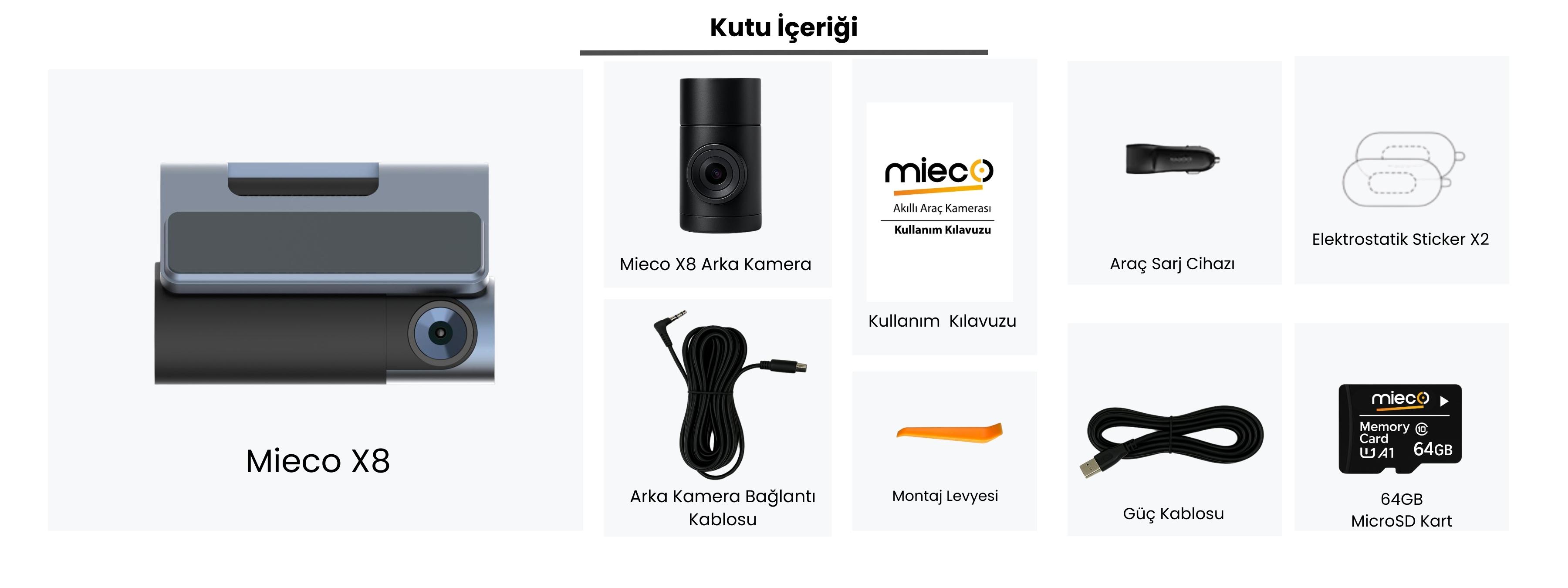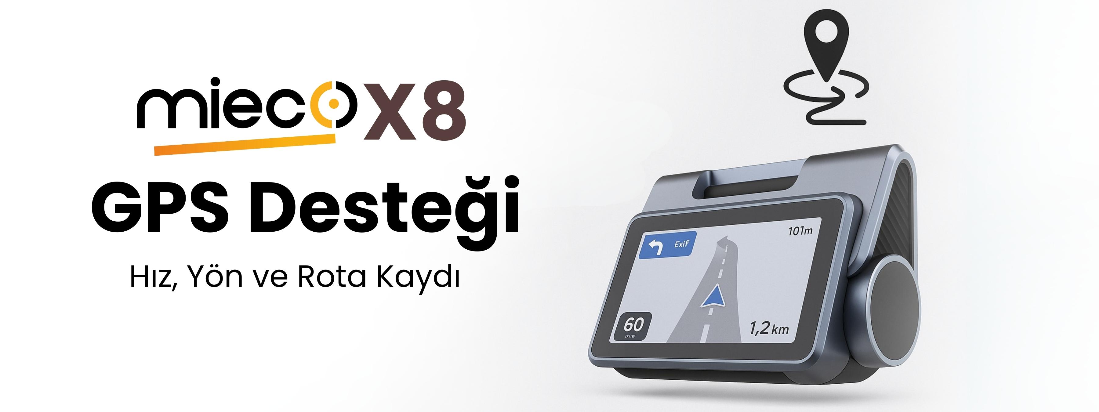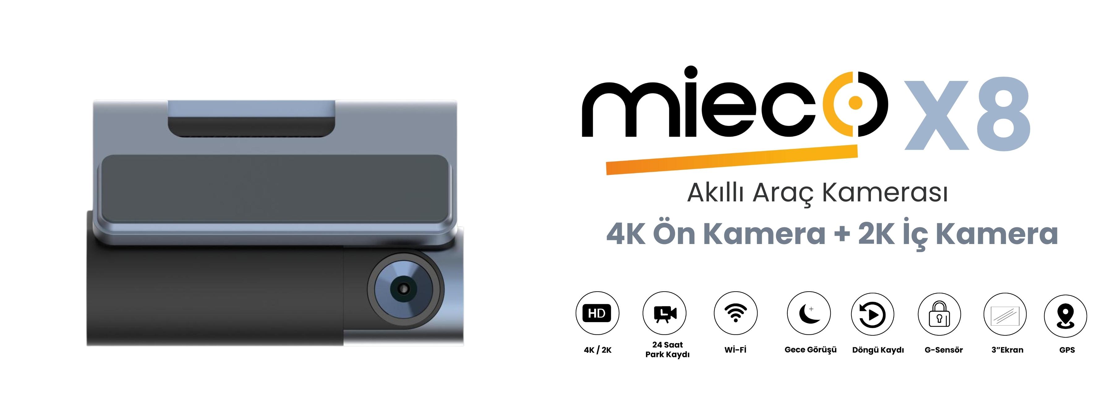 Mieco X8 Wifi /4k Uhd/ 170° Ultra Geniş Açı/ Kör Nokta / Gps/ Adas/ 3 Kameralı Araç Kamerası + Hafıza Kartı Hediyeli