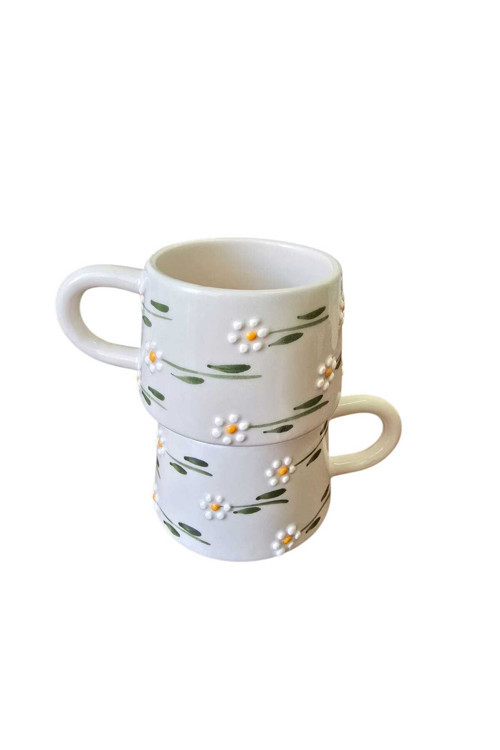 2'Li El Yapımı Papatya İşlemeli Kupa
