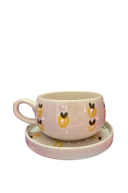 El Yapımı Limon İşlemeli Tabaklı Kupa