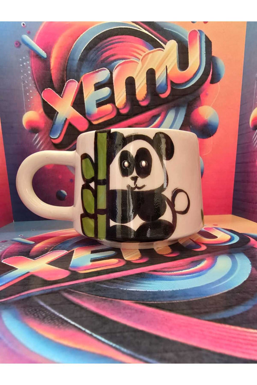 El Yapımı Panda İşlemeli Kupa