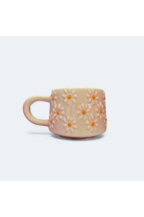El Yapımı Sarı Papatya İşlemeli Kupa