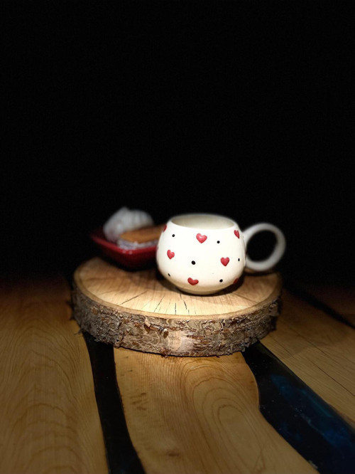 Xemu El Yapımı Seramik Kırmızı Kalpli Ece Kupa, Seramik Fincan, Double Türk Kahvesi, Nescafe Fincanı