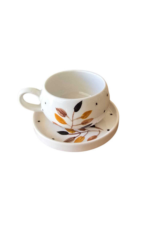 El Yapımı Yaprak İşlemeli Tabaklı Kupa