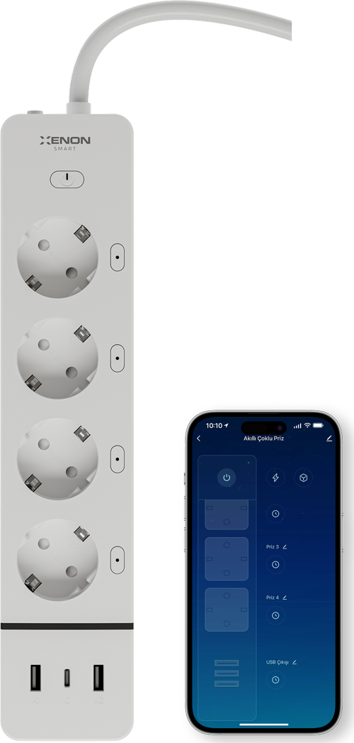 Xenon Smart Akıllı Çoklu Priz | Wi-fi, 3 Port USB + 4 Priz, Sesli Komut ve Mobil Kontrol, Akım Korumalı Priz (X7087)