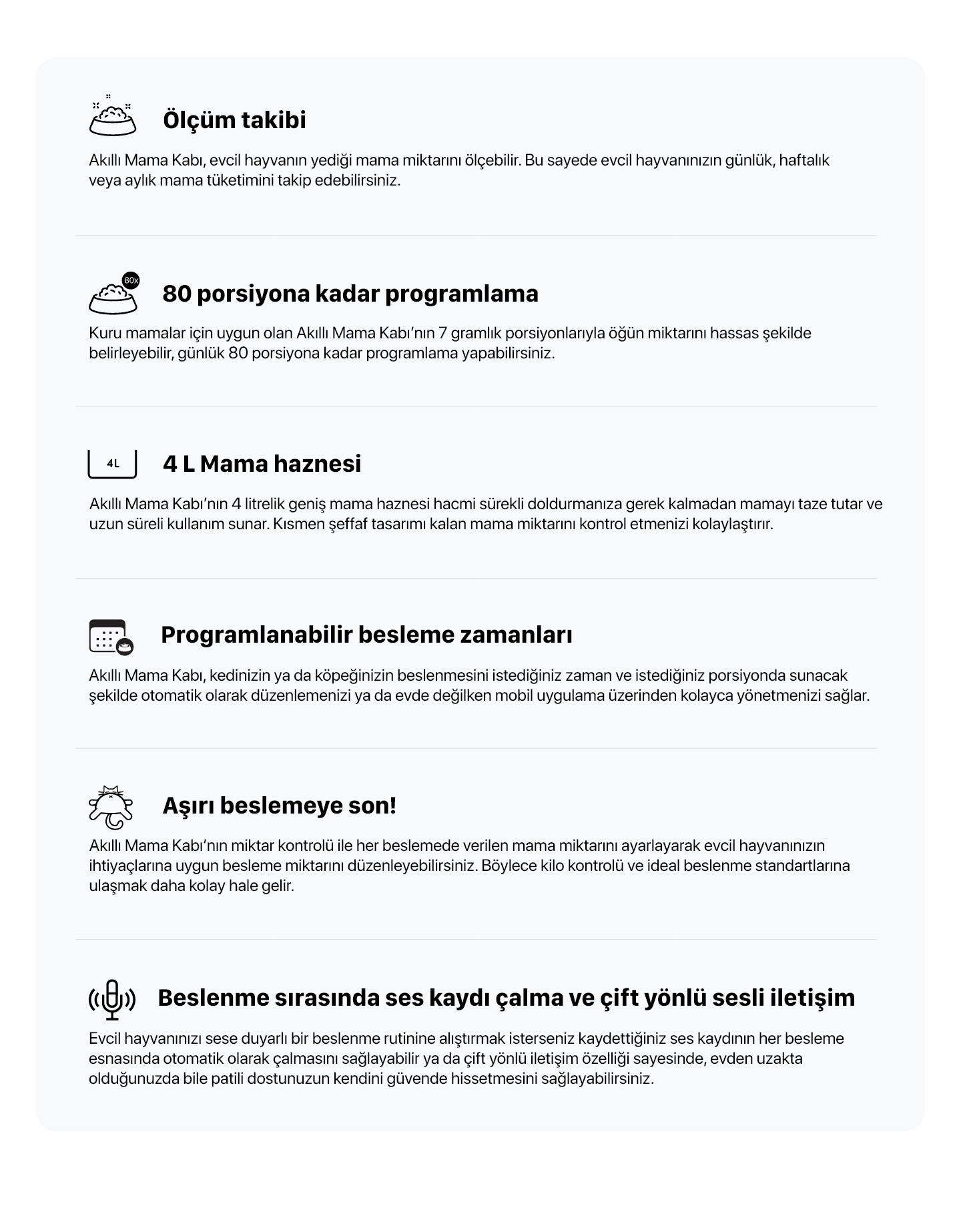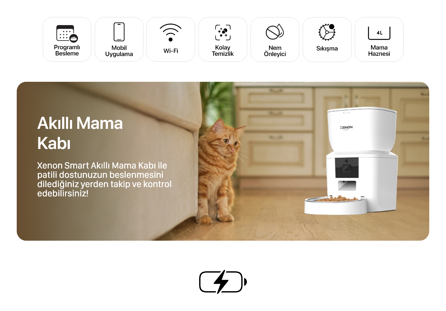 Akıllı Mama Kabı, elektrik kesildiğinde devreye giren yedek pilleri sayesinde önceden ayarlanmış program doğrultusunda kesintisiz çalışmaya devam eder ve patili dostunuzun beslenme düzeni hiçbir şekilde aksamaz.
