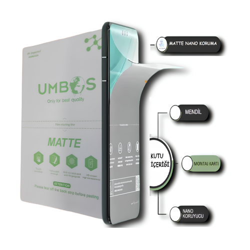 Uyumlu Modeller: Umbos Esnek Nano Kırılmaz Cam Ekran Koruyucu Film modeline uyumludur, mükemmel koruma sağlar.