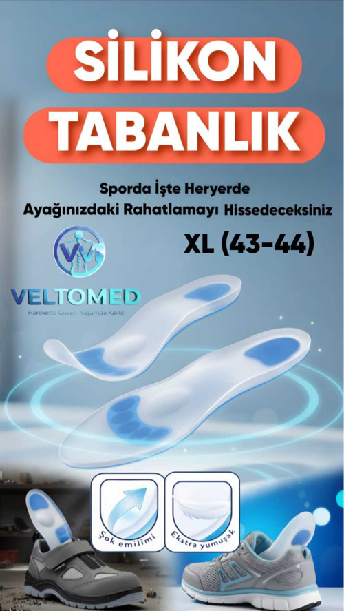 Veltomed XL bdn Tam Ortopedik Anatomik Silikon Jel Tabanlık Şok Emilimi ve Topuk Ağrısı Önleyici Topuk Dikeni
