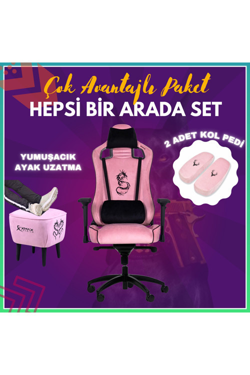 Xmax Pro / Ayak Uzatmalı Kol Pedli Maximus 4D Kol Orijinal Yarasa Mekanizmalı Pembe Oyuncu Koltuğu
