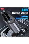 Xo Cc62 Araç Hızlı Şarj Cihazı,104W,Type-C 65W Hızlı Şarj,Lightning Kablo,Type-C-Usb Giriş,Siyah