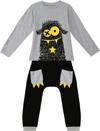 2'li takım. Baskılı t-shirt ve düşük ağ kesimli, rahat, cepleri canavar ayağı gibi tasarlanmış sweat-pantolon.