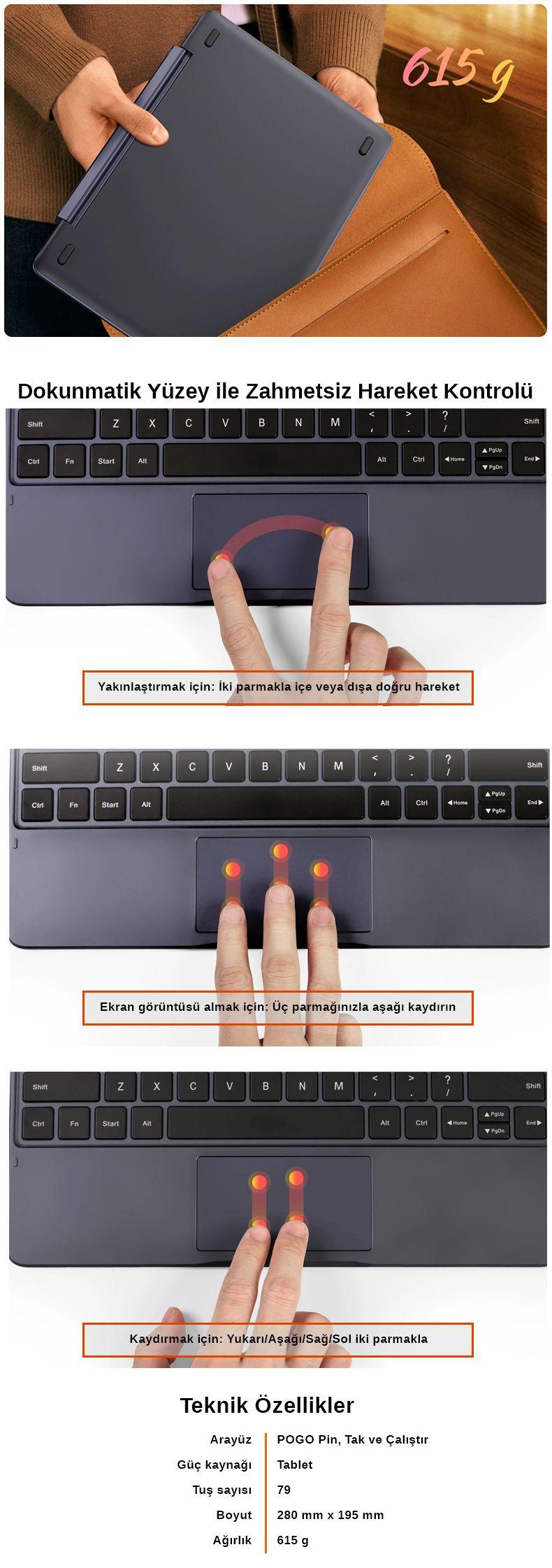 Tam boyutlu klavye ile PC benzeri yazma ve kontrol deneyimi