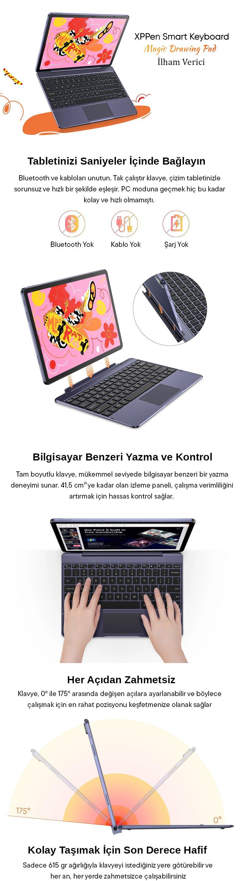 XP-Pen Akıllı Klavye XP-Pen Magic çizim tabletiniz için özel olarak tasarlanmıştır