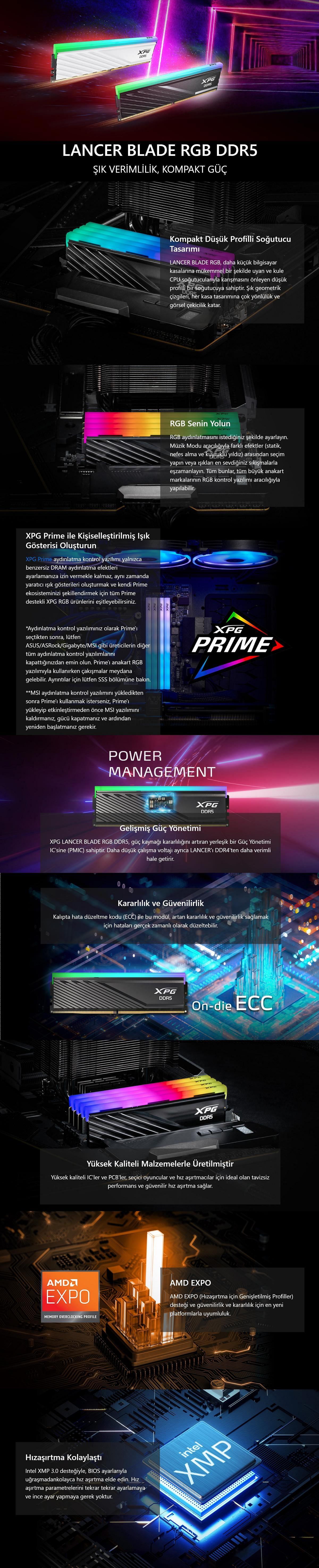 XPG Lancer Blade RGB 16 GB 6000 MHz CL36 AX5U6000C3616G-SLABRBK DDR5 Tek Modül Ram