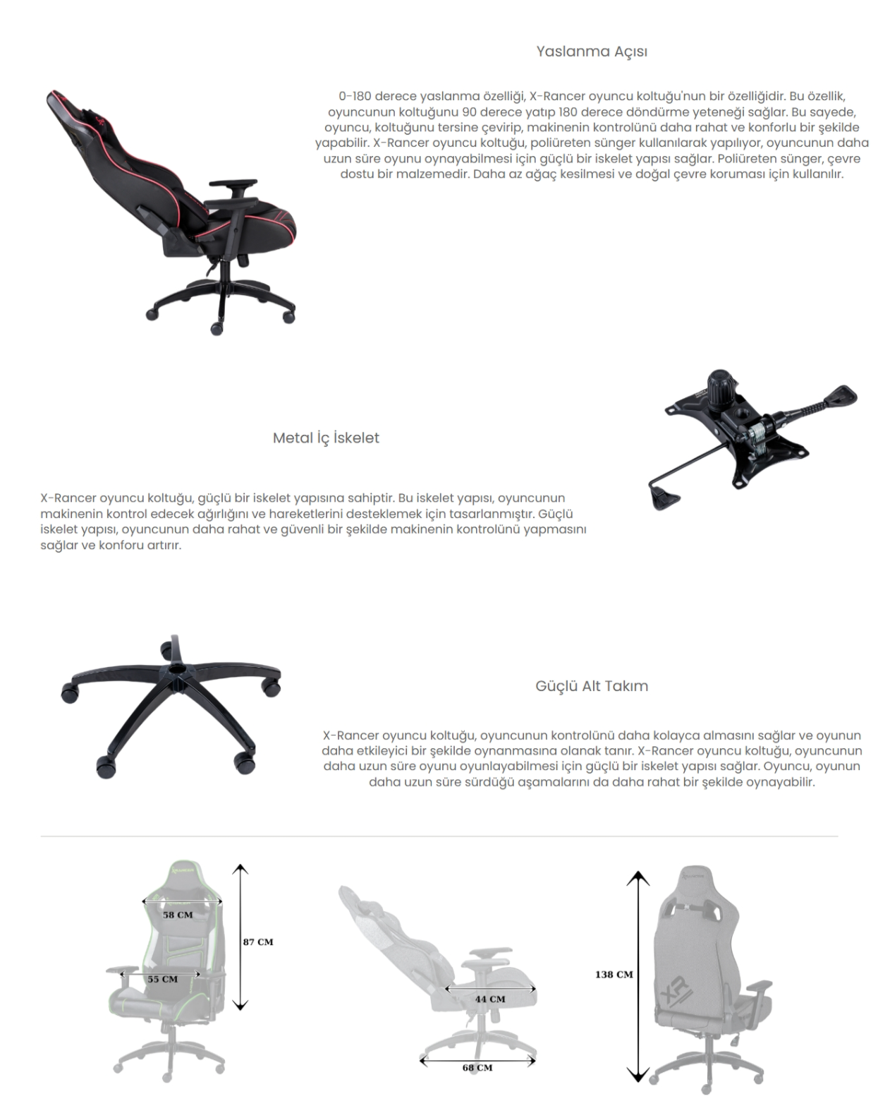 Türksit Range Yastıklı Yönetici Ve Oyuncu Koltuğu Siyah-kirmiz