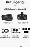 Kutu İçeriği: Y11 cihazı, klipli taban, Type-C şarj kablosu, hoparlör & mikrofon seti, velcro sabitleme bantları.