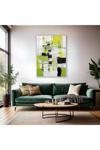 Artarilion Yağlı Boya Görünümlü Soyut Cam Tablo Yeşil Siyah Fırça Darbeleri Salon Tablosu Duvar Tablosu