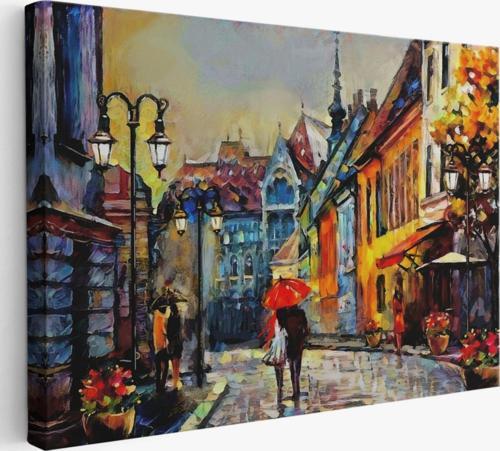 Yağlıboya Görünüm Budapeşte Sokakları Macaristan Dekoratif Kanvas Tablo, Duvar Dekoru 3547