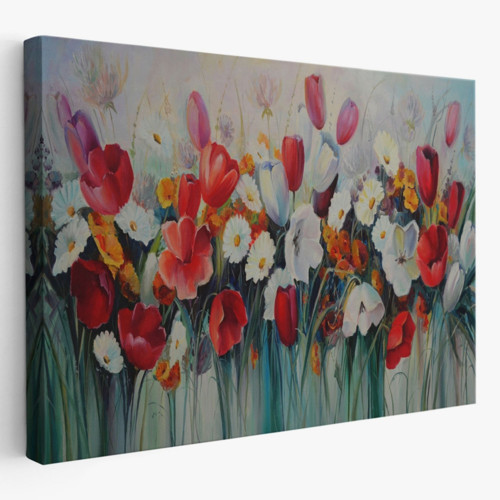 Yağlıboya Görünüm Kır Çiçekleri Dekoratif Kanvas Tablo, Duvar Dekoru 3581