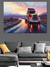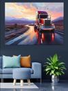 Yağmur Altında Kırmızı Tır Dekoratif Kanvas - Mdf Ahşap Tablo