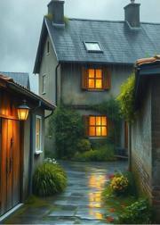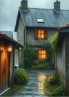 Yağmurlu Sokakta Ev Hediyelik Mdf Tablo 25cmX 35cm