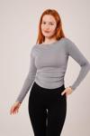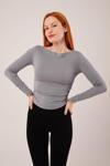 Yaka Detay Uzun Kollu Basic Gri Bluz
