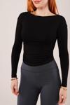 Yaka Detay Uzun Kollu Basic Siyah Bluz