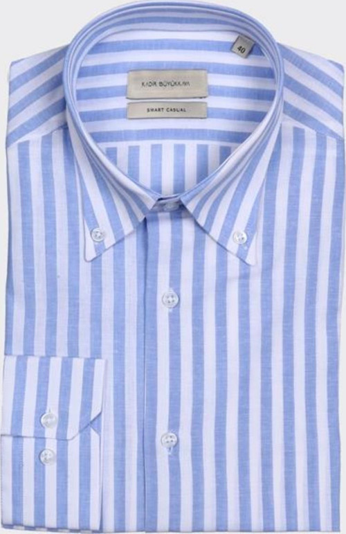 Kadir Büyükkaya'nın bu prestijli yaka düğmeli erkek gömlek modeli, yüksek kaliteli kumaş karışımı ve modern kesimi ile öne çıkar. Hem günlük kullanım hem de özel davetler için mükemmel bir seçim olup, erkek giyim markaları arasında en kaliteli markalar arasında yer alır.