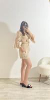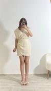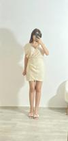 Zarif ve sade şıklığın simgesi olan bu kruvaze yaka kısa keten elbise, yaz aylarında hem rahatlığı hem de şıklığı bir arada sunuyor. Krem rengiyle doğallığın ön planda olduğu bu tasarım, gündüzden geceye birçok kombinle uyum sağlar. Kruvaze yaka detayı ve drapeli bel kısmı, vücut hatlarını nazikçe sararken aynı zamanda feminen bir siluet oluşturur.