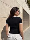 KAZAX'in yaka kol garnili ön parçalı bluzu, şıklığı modern detaylarla buluşturuyor.