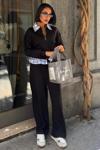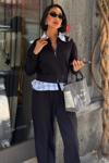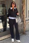 - Siyah rengin asaletini yansıtan, her ortama uyum sağlayan şık bir tasarım.; - Yaka ve etek uçlarında zarif garnilerle zenginleştirilmiş, modern ve sofistike bir görünüm sunar.; - Regular kalıp sayesinde rahat hareket etme özgürlüğü sağlar; günlük kullanım için idealdir.; - Dokuma kumaşı ile konforlu bir deneyim yaşatırken dayanıklılığıyla uzun süreli kullanım vaat eder.; - Normal boy kesimiyle farklı vücut tiplerine uygunluk gösterir ve şık duruşunu korur.; - Pamuklu materyali cildinizle dosttur, nefes alabilir yapısıyla gün boyu ferahlık hissi verir.; - Cool & comfort persona'sına hitap ederek hem stil sahibi hem de rahat olmanızı sağlar.; - Casual/günlük koleksiyonun parçası olarak her gün kullanabileceğiniz pratiklikte tasarlanmıştır.; - İki parça halinde gelen bu takım, kombinlerinizi kolayca tamamlamanız için mükemmel bir seçenektir.; - Her mevsime uygun olmasıyla yılın her zamanında gardrobunuzda yerini alacak çok yönlülüğe sahiptir.