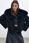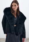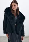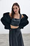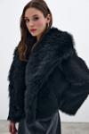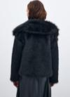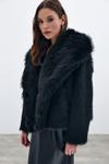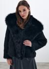 Geniş yaka, uzun düz kol, ön çıtçıtlı, iç astarlı, cepli kürk.