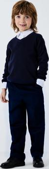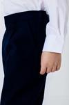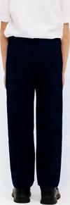 Okula dönüş heyecanını yansıtan lacivert renkli, rahat kalıp kumaş pantolon, çocukların günlük kullanımına uygun tasarlanmıştır