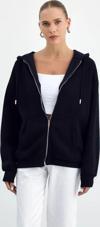 For You woman Oversize Kanguru Cepli Siyah Sweatshirt