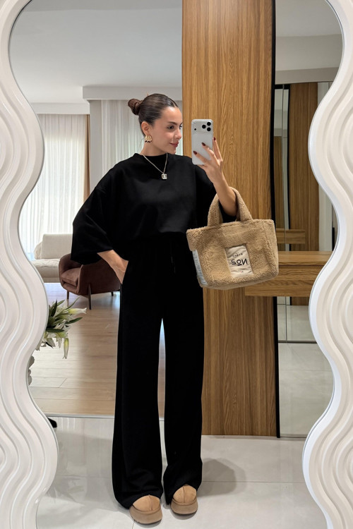 - Yüksek bel ve geniş paça kesimiyle modern ve şık bir görünüm kazandırır.