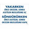 Yakarken Önce Oksijen Sonra Asetilan Musluğunu Aç Söndürüken Önce Uyarı Levhası 25x35 KOD:716