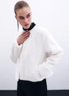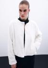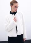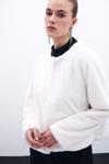 Düz yaka, uzun kol, cepli, astarlı, kısa peluş ceket.