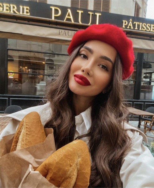 YAKE STORE Siyah Fransız Keçe Ressam Bere Şapka Bere1101 - Kırmızı