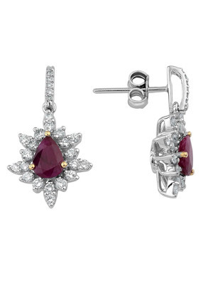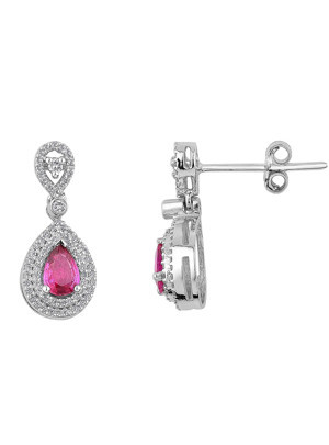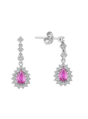 0.35 Karat Pırlantalı Damla Yakut Küpe PE084