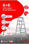 Asvera Yakut Serisi - 6+6 Basamaklı Çift Çıkışlı Galvanizli Profil Merdiven (Ev, bahçe, işyeri için uygun)